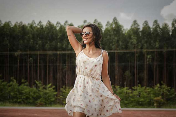 Cotton allows air to circulate and move freely through the fabric, absorbing moisture. Put on pretty cotton dresses, skirts, and shirts to look modish yet comfortable. Easy breezy light-weight cotton chinos work best when it comes to bottoms, go for a lycra blend for added comfort. Opting for lighter colors is